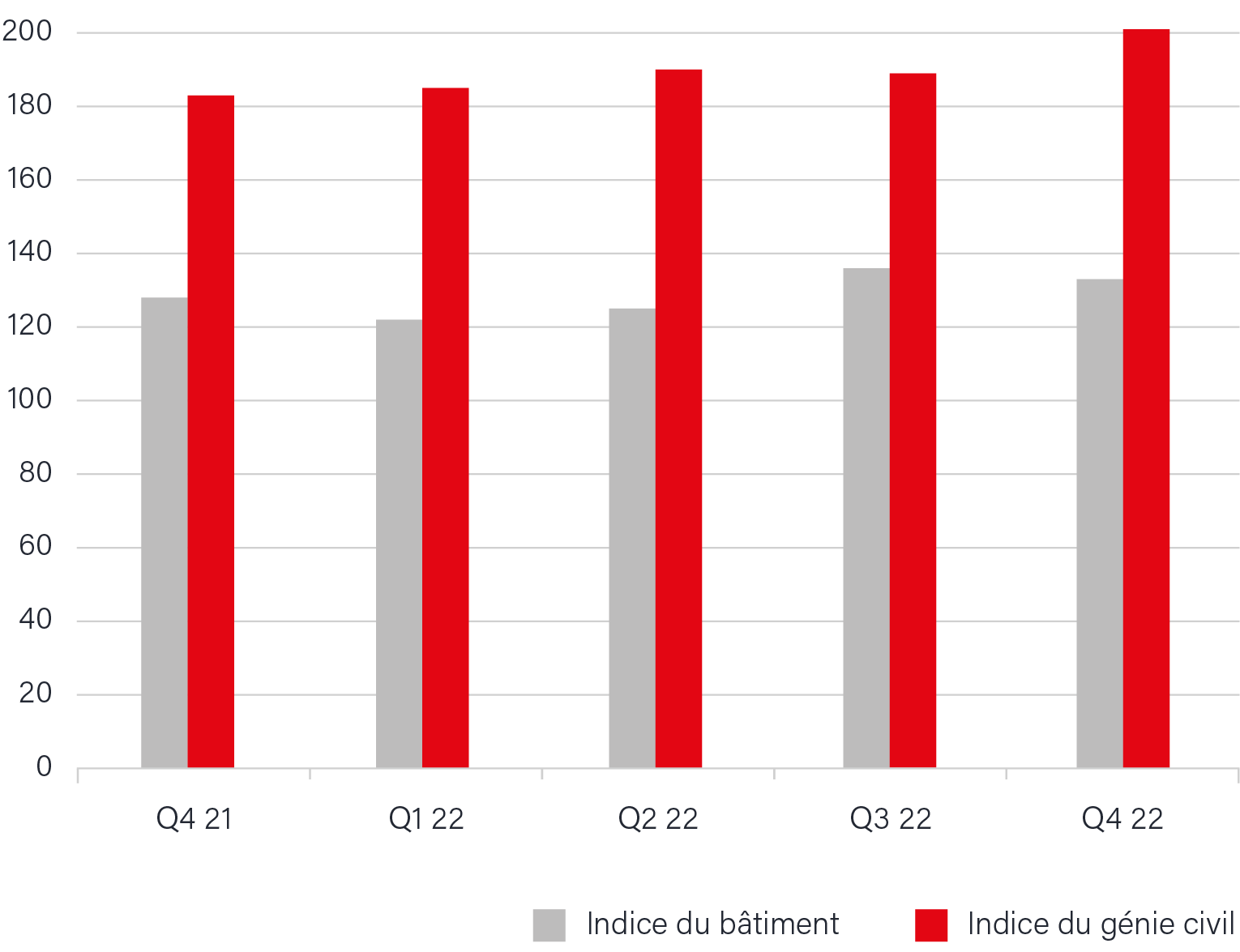 Indices du bâtiment et du génie civil 2022:
